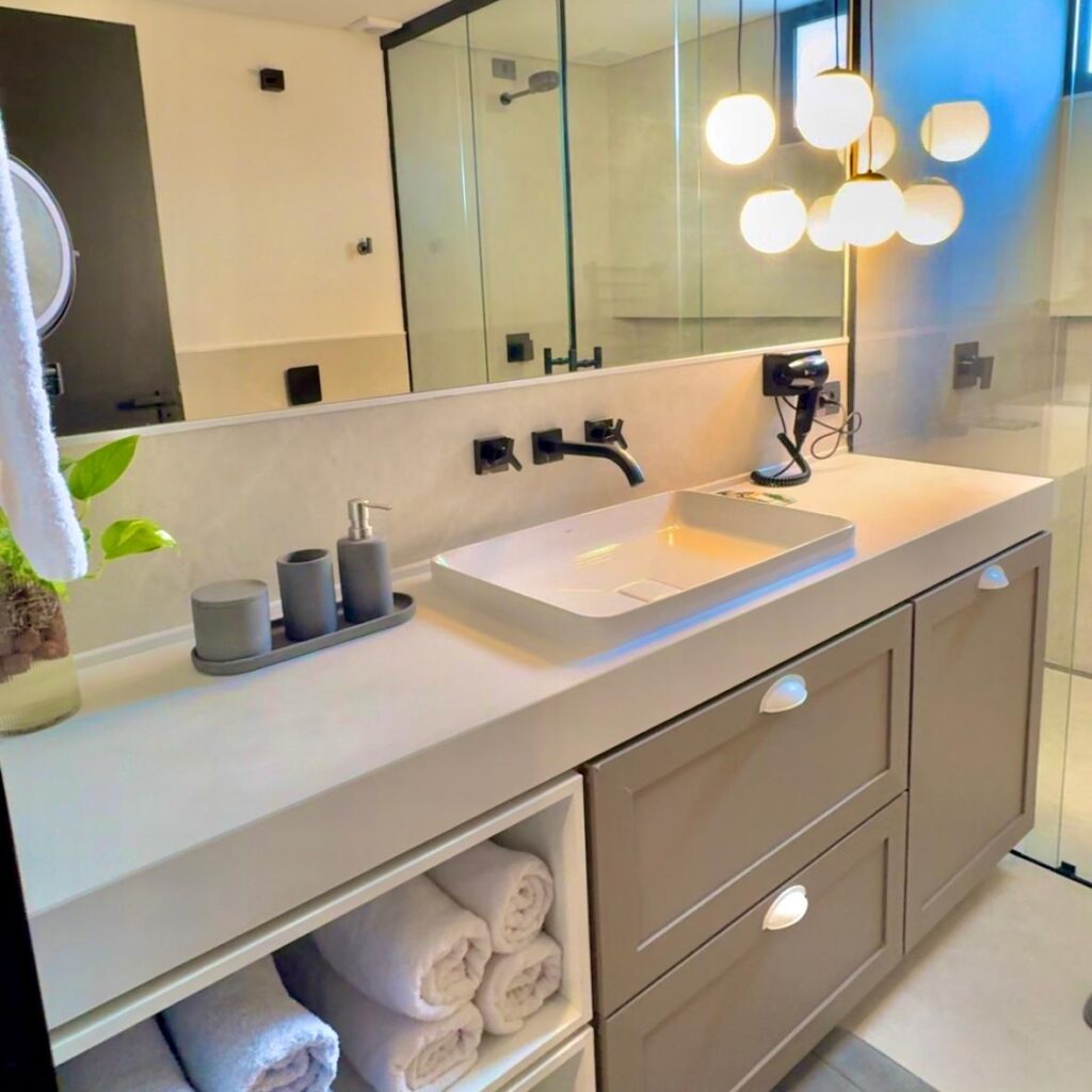 No banheiro, o conforto se transforma em experiência: duas duchas com alta pressão sob uma claraboia de vidro que integra o céu ao banheiro. Toalheiro elétrico, espelho com zoom e sistema de som embutido. O café da manhã é entregue com exclusividade no chalé, com serviço personalizado é um opcional gratuito. Check-in 16h e check-out 14h.